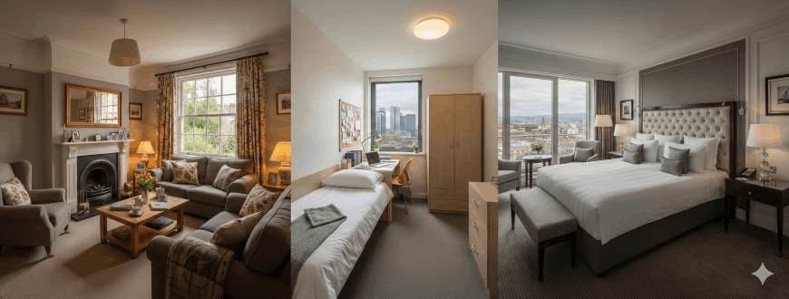Bir ev sahibi ile aile yanında konaklama, modern öğrenci yurtlarından biri, butik tarzı bir konukevi ve hatta isterseniz bir otel dahil olmak üzere size uygun bir dizi konaklama seçeneği sunulabilmektedir.